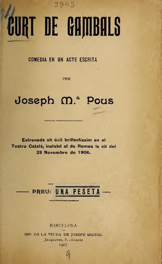 [edit]| Curt de gambals : comèdia en un acte