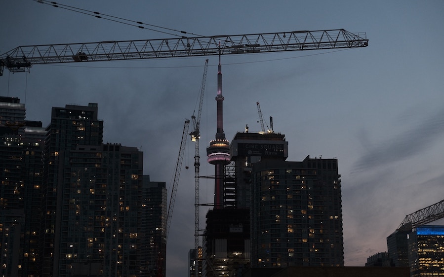 Toronto had 121 downtown cranes operating, says Rider Levett Bucknall’s first-quarter 2020 assessment, highest in North America, but the COVID-19 impact ahead could slow the city’s high-rise pace. Image: betterdwelling.com