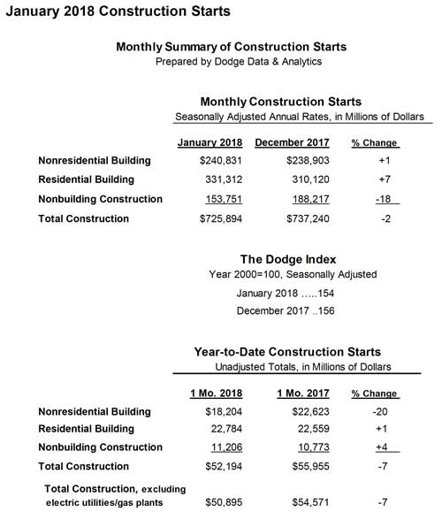 January 2018 Construction Starts Slip 2%